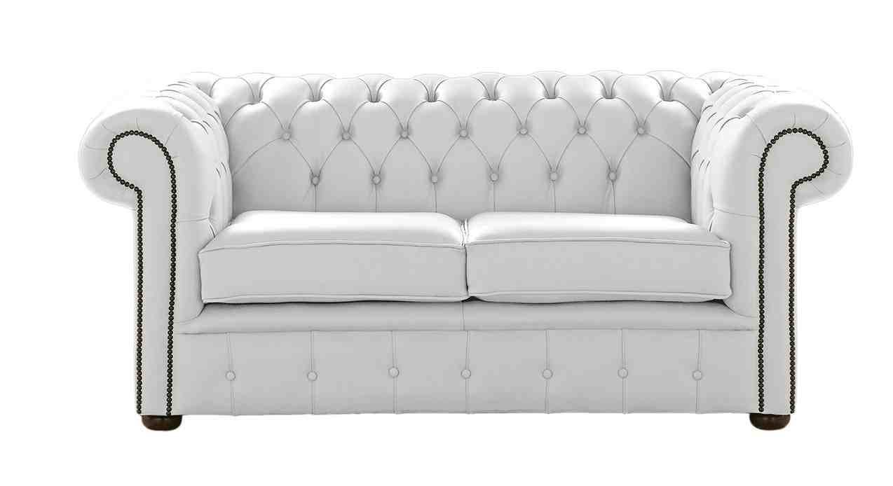 Chesterfield 2 Seater Shelly White Leather Sofa Settee
