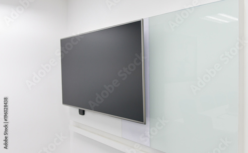 Led Tv Installed To The White Wall Of The Meeting Room With