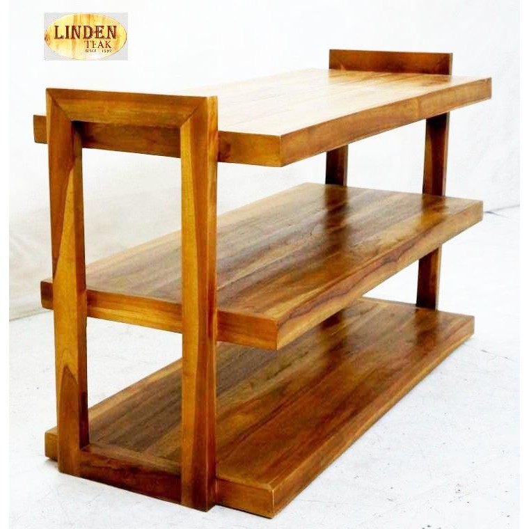 Handcrafted Solid Teak Wood Tv Rack 3layer Furniture