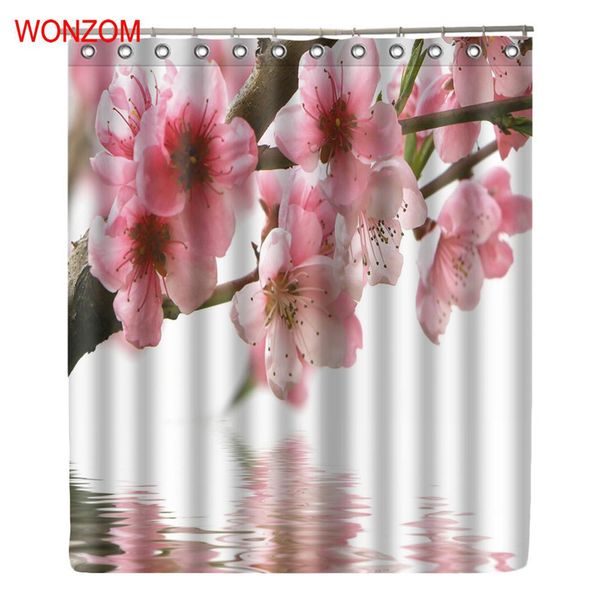 Grosshandel Wonzom Pflaumenblute Moderne Rosa Blume Badezimmer Wasserdichte Accessoires Duschvorhange Mit Haken Bad Vorhang Hause Stoff Geschenk